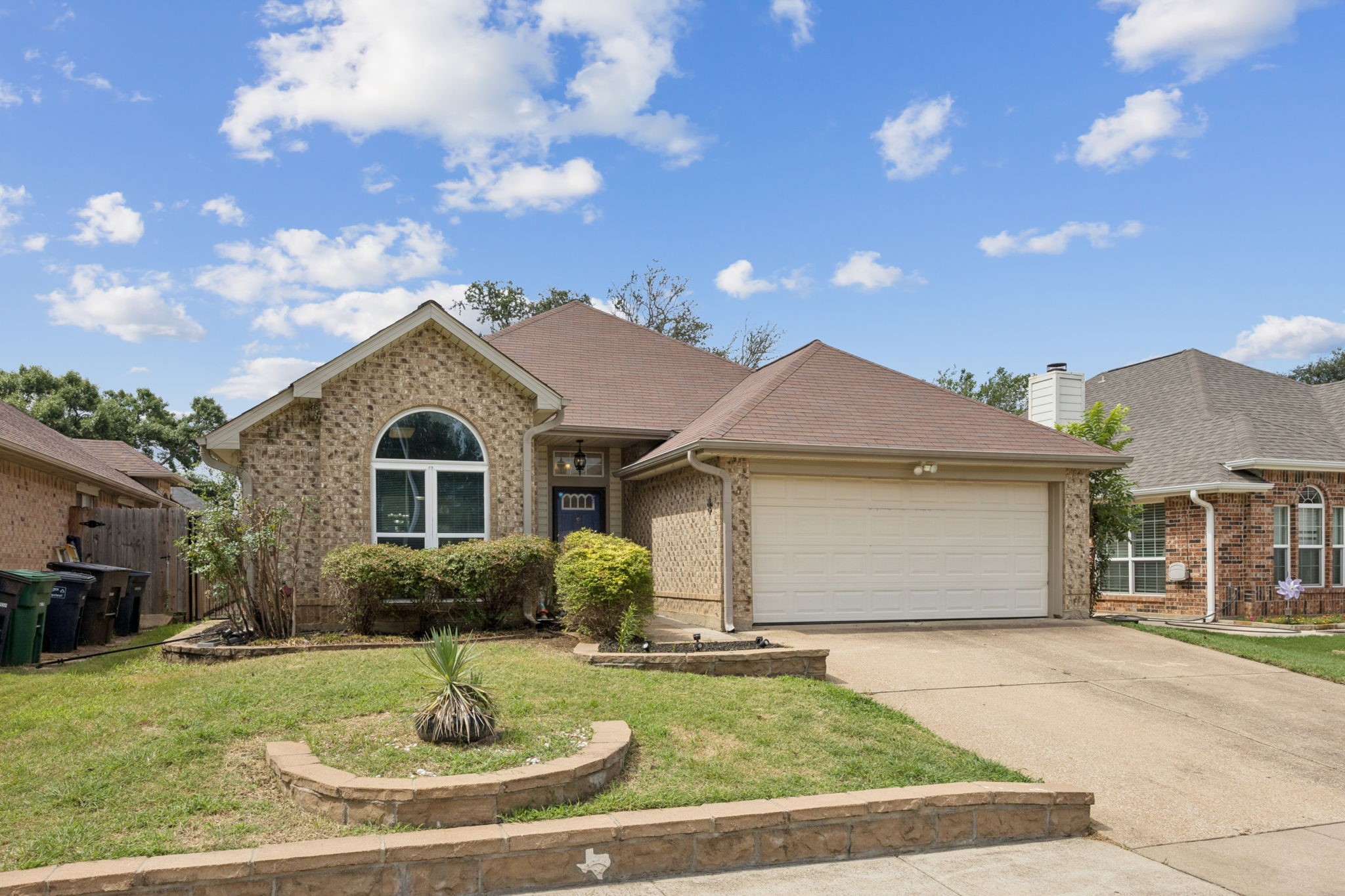 Step into stylish, one-story living in the heart of River Trails, where peaceful streets and community warmth set the tone. With 1,741 sq?ft of thoughtfully laid-out space, this 3-bedroom, 2-bath gem blends comfort and practicality from the moment you walk through the door. Top rated schools in close proximity--an ideal setup for families seeking top-tier HEB ISD education. Nestled near East Loop 820, Hwy 183 and 121, and just minutes from TRE rail, Bell Helicopter, and N. Arlington--get anywhere fast, whether it's downtown Fort Worth, the office, or hitting the hot spots. River Trails is a neighborhood that values curb appeal and community spirit. Mature shade trees, well-kept yards, and friendly neighbors create a small-town feel right in the heart of the metroplex. Spacious & inviting floor plan with soaring ceilings, new LVP flooring in the living and new carpet in bedrooms, plus a dual-sided fireplace in the primary bedroom and bath! An entertainer's kitchen perfect for hosting brunches, dinners, or midnight snack runs. The main living area features walls of windows and vaulted ceilings providing a space for gatherings and relaxation. Don't miss the flex space ideal for a home office, playroom, reading nook or whatever you want over looking the backyard. Looking for a private space to extend living outdoors? The backyard offers a generous covered porch, an expansive open patio, lush grass under a mature shade tree, plus a raised garden bed--ideal for weekend grilling, gardening, or play. This isn't just a house--it's a way of life. One-level living that flows effortlessly, thoughtfully upgraded touches, space to breathe indoors and out, and a community that balances both convenience and connection.